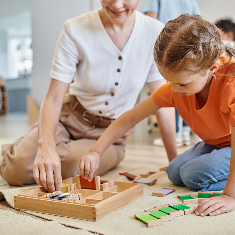 Para ayudar al niño en este período de mayor receptividad, el aula Montessori proporciona una variedad única de materiales, guiados por un maestro capacitado para trabajar con cada niño en su nivel de desarrollo. El niño elige materiales que fomentan la exploración y cada alumno trabaja a su propio ritmo.